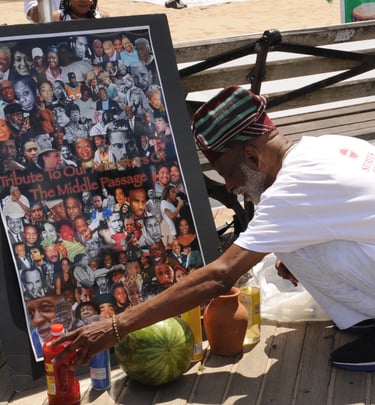 He helped me to see that, just as other people in the world call upon their ancestors (Saint this and/or Saint that. .. ), Black people must also know our history and call upon our ancestors. That is why I decided that, during the International Black Storyteller's Conference held at Medgar Evers College/CUNY in 1989, we must have a significant salute to our Ancestors. That is why I decided that we must take a pilgrimage to the water and pay tribute."